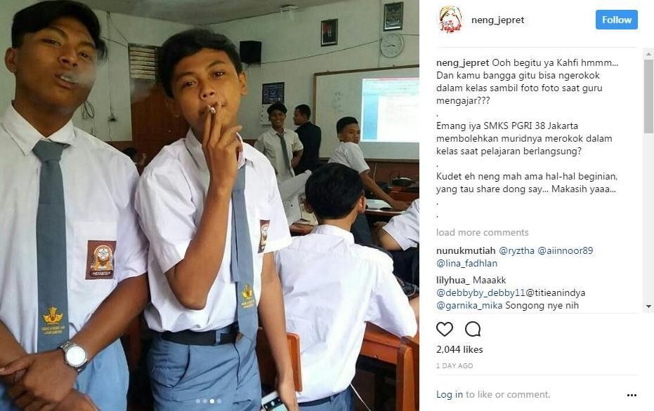 Bahkan dirinya yang sebagai pelaku, mengunggah foto-fotonya sendiri yang sedang merokok di dalam kelas di dalam akun instagram pribadinya walaupun saat itu ada guru yang sedang memberikan pelajaran di kelas.
